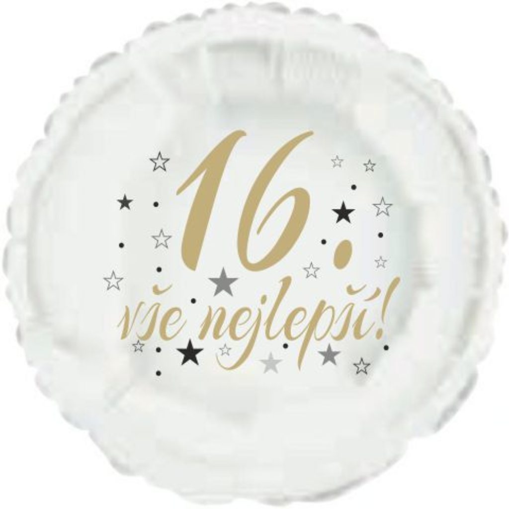 16. narozeniny balónek kruh Fóliové balónky nabízíme v různých tvarech a barvách. Jsou sice dražší než klasické latexové balónky, ale jejich výhodou je kvalita a nepropustnost. Fóliové balónky nafouknuté vzduchem Vám vydrží několik měsíců bez výrazných změn. V případě, že fóliový balónek nafouknete heliem, můžete počítat s dobou létání přibližně 3-7 dní, přičemž létání balónků ovlivňuje okolní teplota i objem samotného balónku.  Balónek má samouzavíratelný ventil, který ihned po nafouknutí zamezí úniku vzduchu popř. helia. Při nafukování vzduchem používejte prosím ruční pumpu popř. brčko na pití.  Inspiraci pro Vaší dekoraci najdete na internetovém magazínu www.party-narozeniny.cz. Velikost nabízených balónků je 42 cm.Je možné nafukovat heliem i vzduchem. Objem 13 litrů. POZOR!!! Všechny námi nabízené fóliové balónky mají samouzavíretelný ventil. V případě nafukování vzduchem, nafukujte ruční pumpou. Po nafouknutí se balonky sami uzavřou. Je možné je taky průběžně přes uzavíratelná ventil dofukovat.