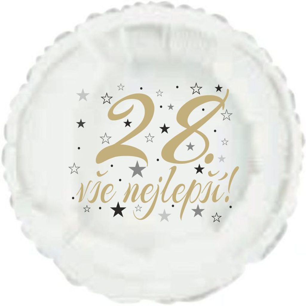28. narozeniny balónek kruh Fóliové balónky nabízíme v různých tvarech a barvách. Jsou sice dražší než klasické latexové balónky, ale jejich výhodou je kvalita a nepropustnost. Fóliové balónky nafouknuté vzduchem Vám vydrží několik měsíců bez výrazných změn. V případě, že fóliový balónek nafouknete heliem, můžete počítat s dobou létání přibližně 3-7 dní, přičemž létání balónků ovlivňuje okolní teplota i objem samotného balónku.  Balónek má samouzavíratelný ventil, který ihned po nafouknutí zamezí úniku vzduchu popř. helia. Při nafukování vzduchem používejte prosím ruční pumpu popř. brčko na pití.  Inspiraci pro Vaší dekoraci najdete na internetovém magazínu www.party-narozeniny.cz. Velikost nabízených balónků je 42 cm.Je možné nafukovat heliem i vzduchem. Objem 13 litrů. POZOR!!! Všechny námi nabízené fóliové balónky mají samouzavíretelný ventil. V případě nafukování vzduchem, nafukujte ruční pumpou. Po nafouknutí se balonky sami uzavřou. Je možné je taky průběžně přes uzavíratelná ventil dofukovat.