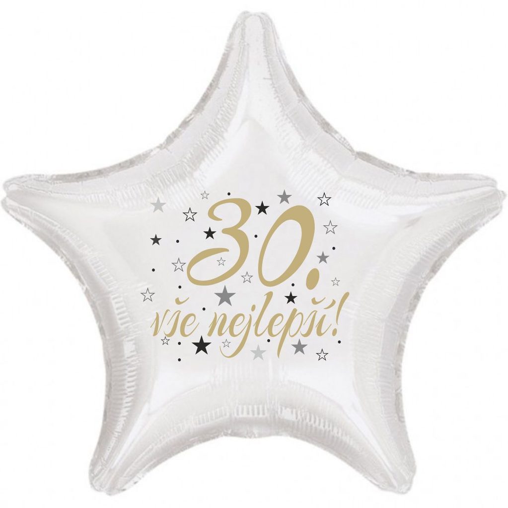 30. narozeniny balónek hvězda  Fóliové balónky nabízíme v různých tvarech a barvách. Jsou sice dražší než klasické latexové balónky, ale jejich výhodou je kvalita a nepropustnost. Fóliové balónky nafouknuté vzduchem Vám vydrží několik měsíců bez výrazných změn. V případě, že fóliový balónek nafouknete heliem, můžete počítat s dobou létání přibližně 3-7 dní, přičemž létání balónků ovlivňuje okolní teplota i objem samotného balónku.  Balónek má samouzavíratelný ventil, který ihned po nafouknutí zamezí úniku vzduchu popř. helia. Při nafukování vzduchem používejte prosím ruční pumpu popř. brčko na pití.  Inspiraci pro Vaší dekoraci najdete na internetovém magazínu www.party-narozeniny.cz. Velikost nabízených balónků je 42 cm.Je možné nafukovat heliem i vzduchem. Objem 13 litrů. POZOR!!! Všechny námi nabízené fóliové balónky mají samouzavíretelný ventil. V případě nafukování vzduchem, nafukujte ruční pumpou. Po nafouknutí se balonky sami uzavřou. Je možné je taky průběžně přes uzavíratelná ventil dofukovat.