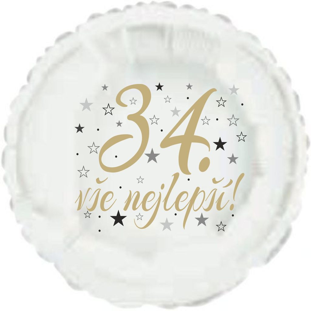 34. narozeniny balónek kruh Fóliové balónky nabízíme v různých tvarech a barvách. Jsou sice dražší než klasické latexové balónky, ale jejich výhodou je kvalita a nepropustnost. Fóliové balónky nafouknuté vzduchem Vám vydrží několik měsíců bez výrazných změn. V případě, že fóliový balónek nafouknete heliem, můžete počítat s dobou létání přibližně 3-7 dní, přičemž létání balónků ovlivňuje okolní teplota i objem samotného balónku.  Balónek má samouzavíratelný ventil, který ihned po nafouknutí zamezí úniku vzduchu popř. helia. Při nafukování vzduchem používejte prosím ruční pumpu popř. brčko na pití.  Inspiraci pro Vaší dekoraci najdete na internetovém magazínu www.party-narozeniny.cz. Velikost nabízených balónků je 42 cm.Je možné nafukovat heliem i vzduchem. Objem 13 litrů. POZOR!!! Všechny námi nabízené fóliové balónky mají samouzavíretelný ventil. V případě nafukování vzduchem, nafukujte ruční pumpou. Po nafouknutí se balonky sami uzavřou. Je možné je taky průběžně přes uzavíratelná ventil dofukovat.