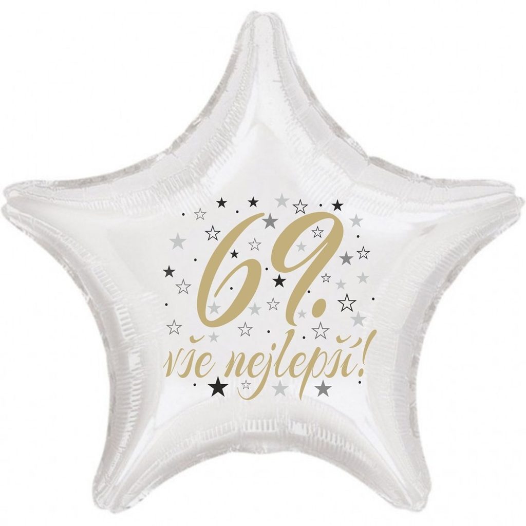 69. narozeniny balónek hvězda   Fóliové balónky nabízíme v různých tvarech a barvách. Jsou sice dražší než klasické latexové balónky, ale jejich výhodou je kvalita a nepropustnost. Fóliové balónky nafouknuté vzduchem Vám vydrží několik měsíců bez výrazných změn. V případě, že fóliový balónek nafouknete heliem, můžete počítat s dobou létání přibližně 3-7 dní, přičemž létání balónků ovlivňuje okolní teplota i objem samotného balónku.  Balónek má samouzavíratelný ventil, který ihned po nafouknutí zamezí úniku vzduchu popř. helia. Při nafukování vzduchem používejte prosím ruční pumpu popř. brčko na pití.  Inspiraci pro Vaší dekoraci najdete na internetovém magazínu www.party-narozeniny.cz. Velikost nabízených balónků je 42 cm.Je možné nafukovat heliem i vzduchem. Objem 13 litrů. POZOR!!! Všechny námi nabízené fóliové balónky mají samouzavíretelný ventil. V případě nafukování vzduchem, nafukujte ruční pumpou. Po nafouknutí se balonky sami uzavřou. Je možné je taky průběžně přes uzavíratelná ventil dofukovat.