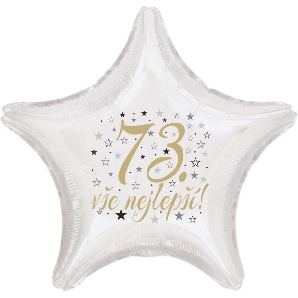 73. narozeniny balónek hvězda  Fóliové balónky nabízíme v různých tvarech a barvách. Jsou sice dražší než klasické latexové balónky, ale jejich výhodou je kvalita a nepropustnost. Fóliové balónky nafouknuté vzduchem Vám vydrží několik měsíců bez výrazných změn. V případě, že fóliový balónek nafouknete heliem, můžete počítat s dobou létání přibližně 3-7 dní, přičemž létání balónků ovlivňuje okolní teplota i objem samotného balónku.  Balónek má samouzavíratelný ventil, který ihned po nafouknutí zamezí úniku vzduchu popř. helia. Při nafukování vzduchem používejte prosím ruční pumpu popř. brčko na pití.  Inspiraci pro Vaší dekoraci najdete na internetovém magazínu www.party-narozeniny.cz. Velikost nabízených balónků je 42 cm.Je možné nafukovat heliem i vzduchem. Objem 13 litrů. POZOR!!! Všechny námi nabízené fóliové balónky mají samouzavíretelný ventil. V případě nafukování vzduchem, nafukujte ruční pumpou. Po nafouknutí se balonky sami uzavřou. Je možné je taky průběžně přes uzavíratelná ventil dofukovat.