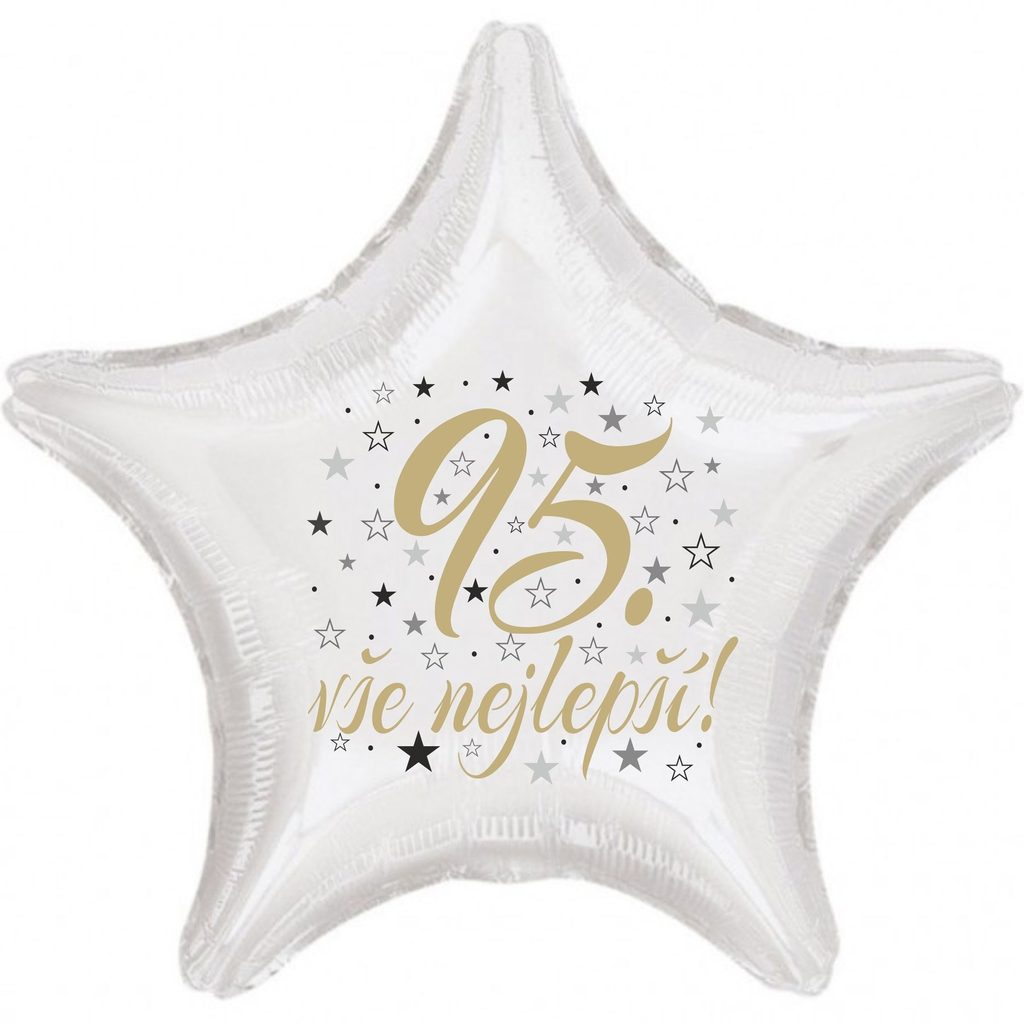 95. narozeniny balónek hvězda  Fóliové balónky nabízíme v různých tvarech a barvách. Jsou sice dražší než klasické latexové balónky, ale jejich výhodou je kvalita a nepropustnost. Fóliové balónky nafouknuté vzduchem Vám vydrží několik měsíců bez výrazných změn. V případě, že fóliový balónek nafouknete heliem, můžete počítat s dobou létání přibližně 3-7 dní, přičemž létání balónků ovlivňuje okolní teplota i objem samotného balónku.  Balónek má samouzavíratelný ventil, který ihned po nafouknutí zamezí úniku vzduchu popř. helia. Při nafukování vzduchem používejte prosím ruční pumpu popř. brčko na pití.  Inspiraci pro Vaší dekoraci najdete na internetovém magazínu www.party-narozeniny.cz. Velikost nabízených balónků je 42 cm.Je možné nafukovat heliem i vzduchem. Objem 13 litrů. POZOR!!! Všechny námi nabízené fóliové balónky mají samouzavíretelný ventil. V případě nafukování vzduchem, nafukujte ruční pumpou. Po nafouknutí se balonky sami uzavřou. Je možné je taky průběžně přes uzavíratelná ventil dofukovat.