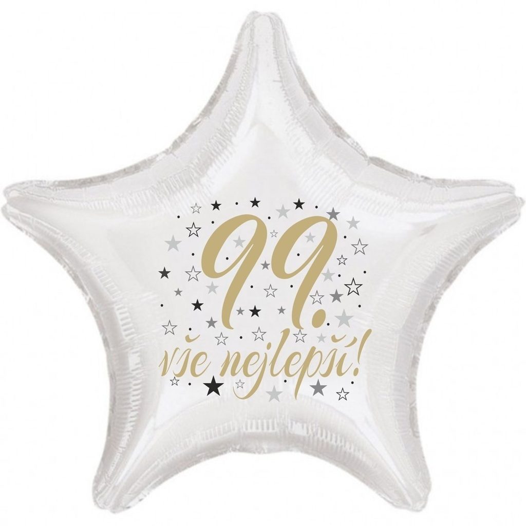 99. narozeniny balónek hvězda Fóliové balónky nabízíme v různých tvarech a barvách. Jsou sice dražší než klasické latexové balónky, ale jejich výhodou je kvalita a nepropustnost. Fóliové balónky nafouknuté vzduchem Vám vydrží několik měsíců bez výrazných změn. V případě, že fóliový balónek nafouknete heliem, můžete počítat s dobou létání přibližně 3-7 dní, přičemž létání balónků ovlivňuje okolní teplota i objem samotného balónku. Balónek má samouzavíratelný ventil, který ihned po nafouknutí zamezí úniku vzduchu popř. helia. Při nafukování vzduchem používejte prosím ruční pumpu popř. brčko na pití. Inspiraci pro Vaší dekoraci najdete na internetovém magazínu www.party-narozeniny.cz. Velikost nabízených balónků je 42 cm.Je možné nafukovat heliem i vzduchem. Objem 13 litrů. POZOR!!! Všechny námi nabízené fóliové balónky mají samouzavíretelný ventil. V případě nafukování vzduchem, nafukujte ruční pumpou. Po nafouknutí se balonky sami uzavřou. Je možné je taky průběžně přes uzavíratelná ventil dofukovat.
