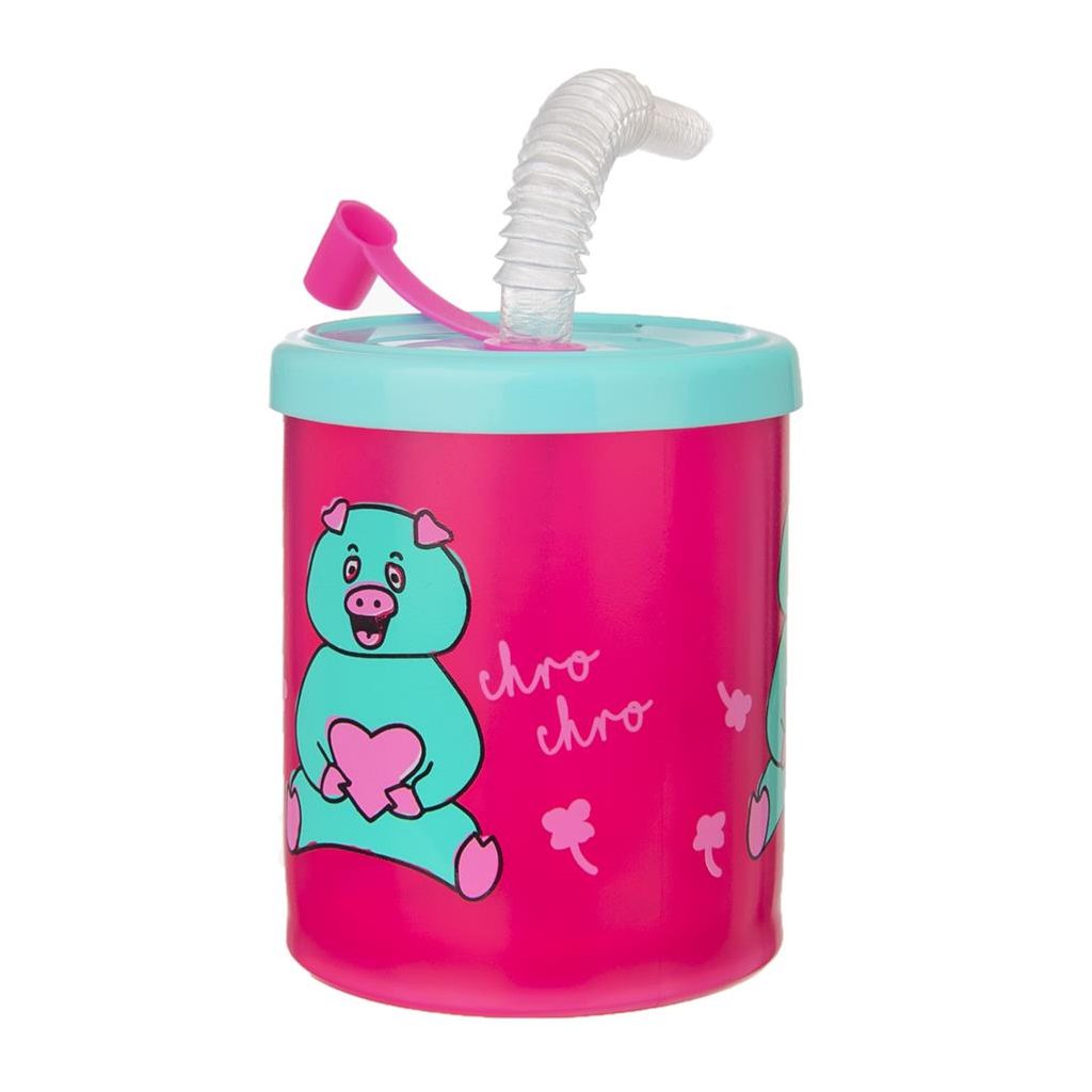 Detský plastový hrnček s roztomilou dekoráciou prasiatka a slamkou na pitie. Neobsahuje BPA.