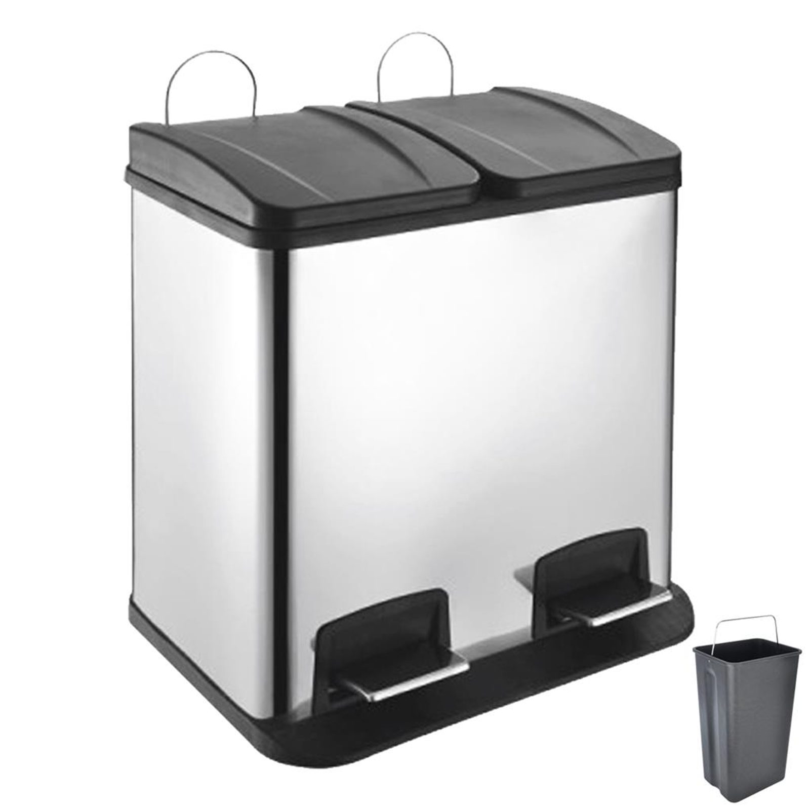 Dvojitý odpadkový kôš s pedálovým otváraním a rukoväťou na jednoduché prenášanie. Ideálny na triedenie odpadu.