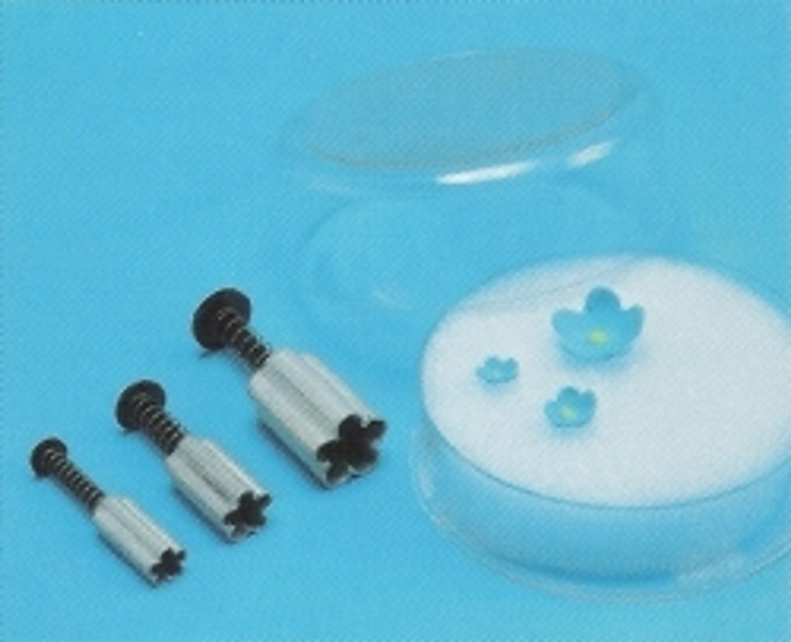 Piestový Vypichovač na perky. Použitie: orežte potrebný tvar podľa vykrajovátka na pieste. Potom stlačte piest k otlačeniu štruktúry. Ďalšie stlačenie piestu uvoľní Vami vytvorený tvar von z vypichovače. Rozmery: 6, 10, 13mm.