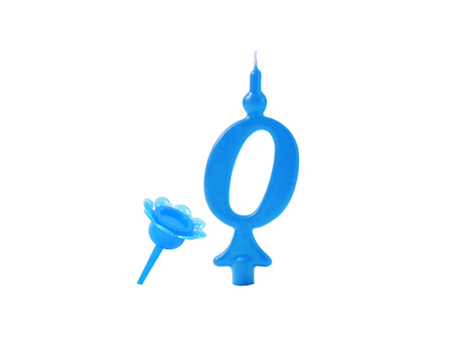 Modrá sviečka na narodeninovú tortu vrátane stojana.