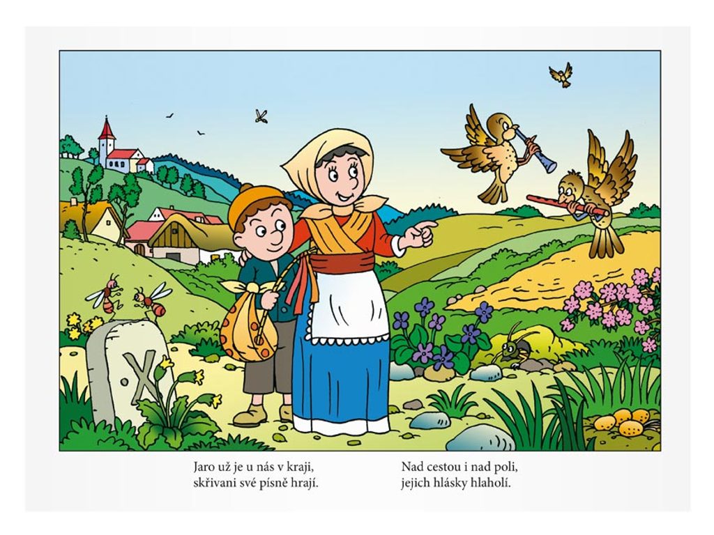 Dětské omalovánky MFP - Jaro - Udělejte si pohodové odpoledne s dětmi a vybarvěte si obrázek. Tyto omalovánky jsou jednoduché s velkými obrázky, tudíž vhodné i pro ty nejmenší děti. Vybarvování obrázků pomůže rozvíjet řadu schopností a dovedností, zejména má velký vliv na jemnou motoriku ruky. Zakoupit si u náš můžete i kvalitní barevné pastelky. Ilustrace a texty: J. Pospíchal Formát omalovánek: A5 Počet předloh k vymalování: 8 (cvrnkání kuliček, vití věnečků, houpání na houpačce, aj.) - U každého obrázku je básnička. Počet stran: 16 Varování: Nevhodné pro děti do 3 let. Nebezpečí vdechnutí a spolknutí malých částic. Uvedená cena je za 1 ks.