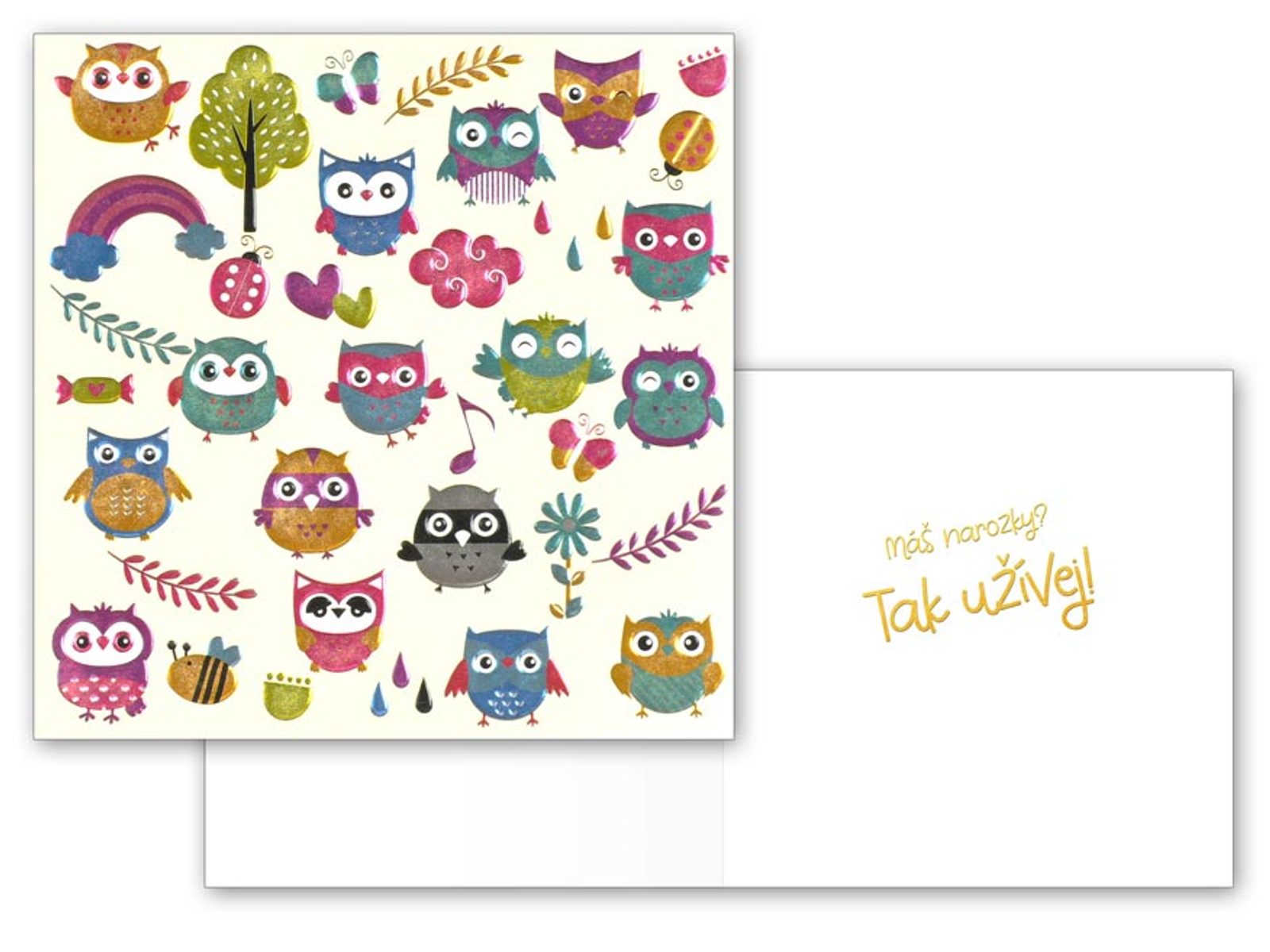 Udělejte oslavenci radost originálním narozeninovým přáním. Text uvnitř přání: Máš narozky? Tak užívej! Papír: pohlednicový karton 240 g Přání je baleno v sáčku, součástí balení je i dopisní obálka.