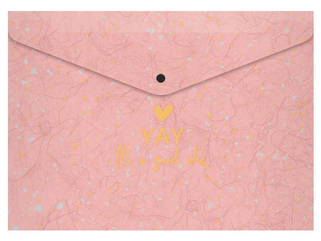 Složka z PolyPropylenu (PP), která se zavírá pomocí druku (patentky) - velikost A5. Se zajímavou texturou a motivačním textem.