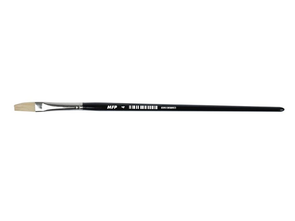 Školní štětec plochý - vhodný do hodin výtvarné výchovy, ale i pro domácí kreativní tvoření - velikost: 4 - materiál: štětiny prasete - použití: vodovými a temperovými barvami, k vykreslování různých ploch na papíře, k malování - barva: černá Uvedená cena je za 1 ks. Štětce jsou uloženy v papírové krabičce po 12 ks.