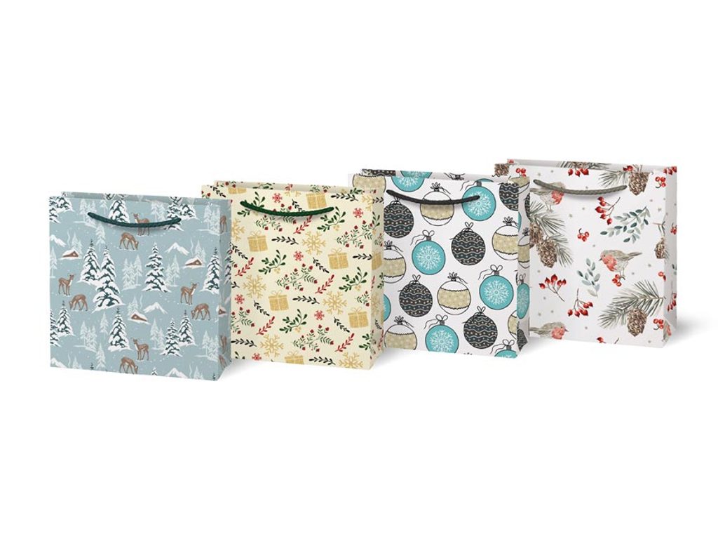 Vánoční dárková papírová taška, je ideální na předání dárků, a velkým pomocníkem když je těžké dárek zabalit do dárkového balicího papíru. Taška je opatřena pevným uchem. Mix vánočních motivů. Uvedená cena je za 1ks.