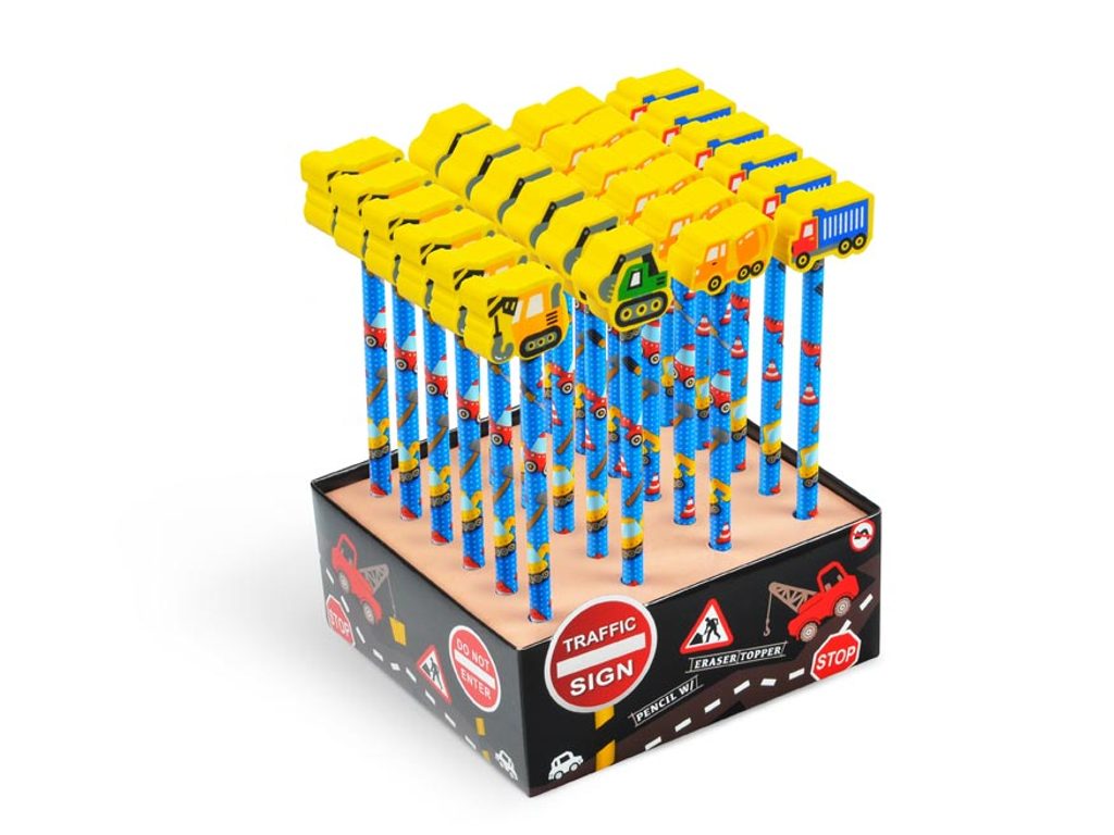 Grafitová tužka s gumou pro malé stavitele. Mix motivů - těžké stavební stroje: - nákladní auto - bagr - jeřáb - domíchávač Uvedená cena je za 1 ks